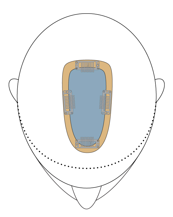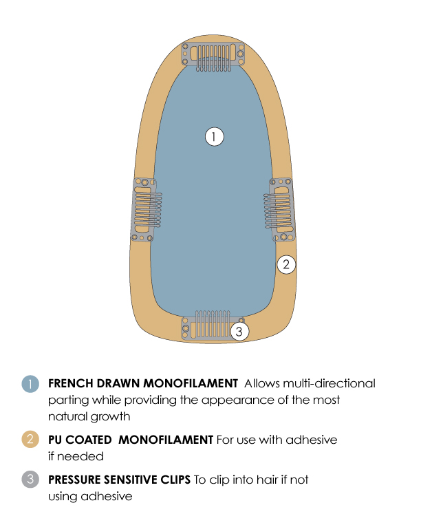 This Clip-In topper, worn over the part, adds volume to long styles with beautiful Remy human hair. The design is hand tied using French knotting, a superior knotting technique that creates the most natural appearance possible.